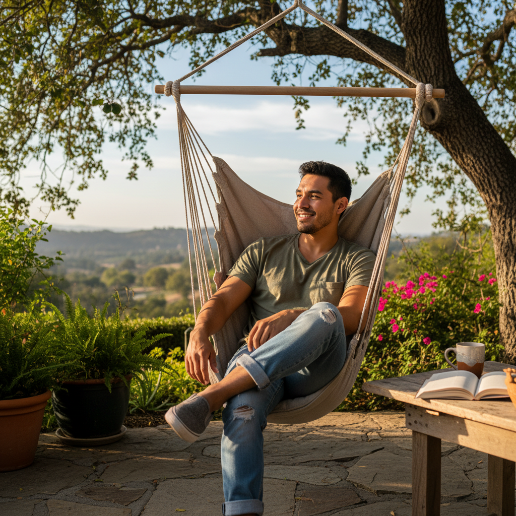 Jordan Reyes, Latino man in his late 20s, relaxed outdoor setting