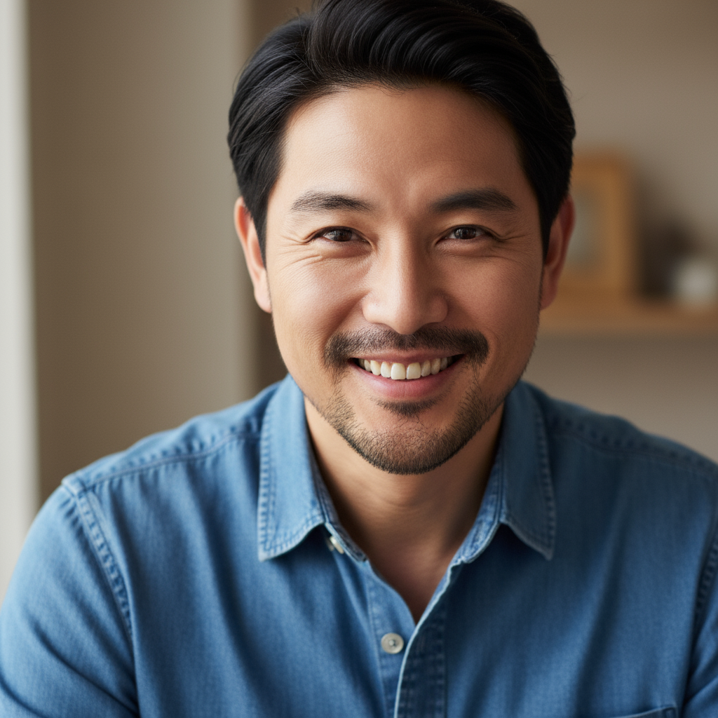 Marcus Chen, Asian-American man in his 30s, smiling in casual attire